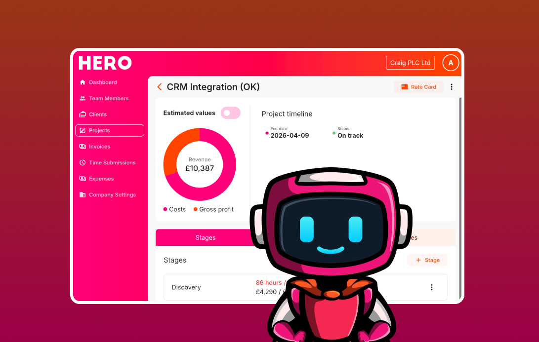 Hero Projects is a lightweight tool designed to do one thing exceptionally well: track time, turn it into invoices and collect payment. No bloated dashboards. No endless tabs. Just the features you need to stay on top of your projects and get paid faster.